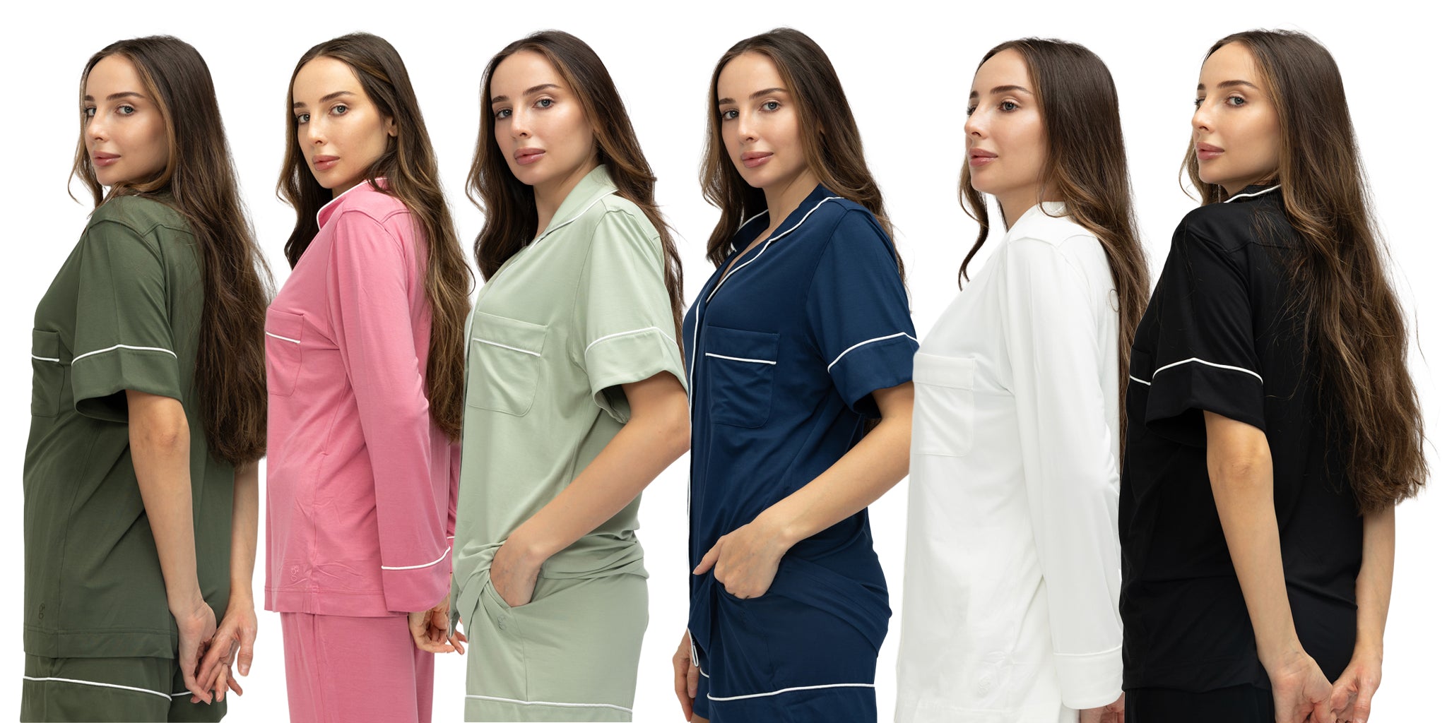 بيجاماتنا مصنوعة من قماش البامبو، مما يمنحك نعومة فائقة، برودة طبيعية، تهوية مثالية، وصداقة للبيئة.